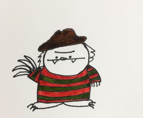 Today for Inktober, little baby Troll Girl dressed up as Trolly Krueger so she could scare some snails. She says the hat doesn’t fit her big head very well but she likes it anyways.